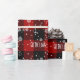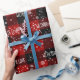 Vit MED KÄRLEK text med snöflingor på röd och svart buffelbaksida. Text kan redigeras.