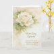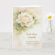 Ett kondoleansvarskort med en elfenbensfärgad akvarellros och elegant, tryckt text. Utformat för att ge tröst och frid under en tid av sorg, delar detta troende kort ett hjärtligt budskap om bön och Guds tröstande närvaro. Perfekt för att uttrycka medkänsla, kärlek och minne när ord är svåra att finna.