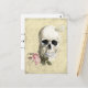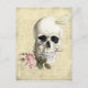 En skalle, med ro mellan tänderna och en fjäril, som lagts över en bakgrund av ett handskrivet vittnesmål från Salem Witch-rättegångarna.