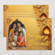 Front Side: På lämnad är anpassningsbarnas foto inramat i en graciös båge med guldfärgat gräns, vilket framkallar temperaturen i tempelarkitekturen och intimiteten hos familjen firande. Porträtt utstrålar glädje, tradition och närhet, perfekt fångande av Diwalis hjärta. På högerna blåser en gyllene bakgrund med motiv för blommigt och löv, förankrad av en glödande diya som symboliserar ljus, hopp och förnyelse. "Lycklig Diwali" flyter ovan i elegantens kursivt, med namn i familjen nedströms i ett rent, tidlöst teckensnitt. Baksida: Det gyllene temat fortsätter och slår in det motsatta i rikedom. Den lämnat sidan innehåller ditt personlig-meddelande, oavsett om det är poetiskt, lekfullt eller hjärtligt, skrivet i ett snyggt skript. Högerna är öppen för ytterligare text, citat eller t.o.m. ett andra foto om det behövs. Layouten är balanserad, vibens firande och berättelsen är din.