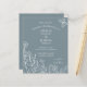 Meda Flowers Blue Grått Bröllop Budget Inbjudan