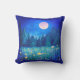 Dekorativ kudde i ett vattenfärgslandskap med en skugga av vilda blommor och en mörk under fullt