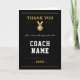 Show your appreciation with this elegant “Thank You Coach” card featuring a classic medal design and the message “for everything you do.” With a clean black and gold layout, this card is perfect for teams and parents looking for a meaningful coach gift without needing a photo. Ideal for end-of-season thank you gifts, coach appreciation, and sports team celebrations.