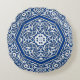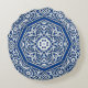 Rund Pillow i en medallion mönster som anpassats från antika persiska brickor - vitt spårämne på koboltblått