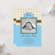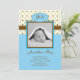 Modernt beställnings- födelsemeddelande för en pojke. Tillfoga ditt egna foto och ord. Presenterar bebisinitialermonogramsna och en gullig polka dotsbakgrund i blått och brunt. Flott yet skämtsamt.