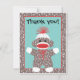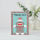 Så gulligt! Förtjusande bebissock monkeytack dig på denna aquablåttbakgrund. Underbar för födelsedag, födelse eller baby showertackkort eller, därför att precis du älskar sock monkey! Baksida har rum för ditt att notera. Hand plockadeillustration av McBooboo