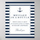 Be gästerna i bröllop att lämna sitt budskap till nylingarna att läsa på sin första årsdag med detta nautiska "Meddelande i flaska"-tecken med ankare och marin och vit rand. Eller använda tecknet som ett avrådstecken för din pojkars babydusch eller nautisk möhippa.