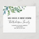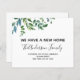 Budget Grey Modern och Elegant Watercolor Vår Vi har Flyttat New Home eller Ny adress Card - omfattar vacker och elegant manustypografi med modern botanisk grey för det speciella nya hemmet eller Nya adress firande.