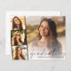 Ett budgetvänligt uttalande från elegant studenten som visar att student bild överlagrades med tre mindre fyrkantiga foton, "student" i ett modernt skript och deras namn och klassår i enkel typografi.