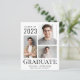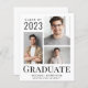 Modern budgetvänlig förklaring från studenten med tre foton, "Student" i stor elegant och gradens namn, klassår och skola eller universiteten i enkel typografi.