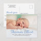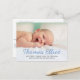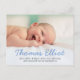 Elegant Script Namn Blue Baby Pojke Photo Birth Notice vycard med personlig tack för ditt meddelande på baksidan för support och gåvor.