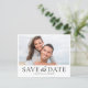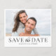 Modern och minimal spara datumkortet med en elegant svart typografi på en skarp vit bakgrund. Den här contemporaryn har plats för två personliga foton, så att du kan visa dina favoritstunder. Perfekt för minimalistiskt, elegant eller svartvit temat bröllop. Fullständigt anpassade och enkelt att redigera med dina egna uppgifter för en snyggt och ett minnesvärt första intryck.