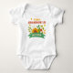 nyheterna med de människor du kärlek mest och som kommer att kärlek era baby mest - morföräldrarna som kommer att vara! Låt dem känna sig speciella med en gravid som är designad bara för dem. Denna gender-neutralt-reklam för gravid som tillhör morföräldern är designad med ljusa och färgstarka solblommor och andra blommor, grönska och löv. Första Grandchild skrivs ovanför visningen blommigt och förfallodatumet skrivs nedan på en banderoll för grönt. Hela texten kan redigeras. Den här söta bodykostymen i baby kommer att värma deras hjärtan när de ser det!