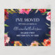 Budget Navy Blue and Rosa Modern and Elegant Blommigt Watercolor Vår I har Flyttat New Home eller Ny adress Card - innehåller vacker och elegant skripttypografi med moderna botaniska blommor och grönenergi för speciella New Home eller Nya adress firande.