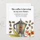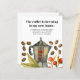 Det här snygga budgetanslaget för flytta av kaffe älskare har en vattenfärgskonst av en kaffekanna med kaffebönor och botaniska accenter. Det ursprungliga citatet av Susan Coffey lyder: "Kaffet brinner i mitt nya hem." Anpassa med ditt namn, nytt adress och mobilt nummer. Kortets baksida har ett meddelande om anpassningsbar och namnteckning accentuerat av en sprit av kaffebär. Designad av Susan Coffey.