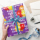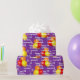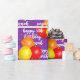 Den här designen innehåller ett speciellt mallmeddelande i vitt över en lila bakgrund som matchar en av fyra färgstarka ballonger i ett grupperat mönster. Anpassa meddelandet och se hur det ser ut eller ta bort meddelandet för att lämna bara ballonger.
