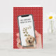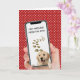 Golden-hämtning i cell mobila ram med textmeddelande på vit polka dots röd för födelsedagen från hund