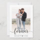 Det här meddelandet om förlovning av bilder är enkelt och elegant och det är perfekten för att låta din familj och dina vänner få kännedom om bran innan du har fastställt ett datum i bröllop. Kortet har ett foto på en ren vit bakgrund med parets namn och datum och ställe de har, och ett trendig-skriptteckensnitt som anger "början av för alltid". Baksidan är tom för mångsidighet. Om du behöver designhjälp, eller vill matcha produkter eller andra färgrutor, kontakta mig genom Zazzle.