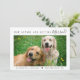 Modern förlovning-meddelande som innehåller ditt sällskapsfoto, "Våra människor Gifta sig" i en blandning av enkel typografi och ett skript för snyggt, och ditt första namn på framsidan. Du kan anpassa till "Mina människor" för en katt eller hund och lägga till plats och datum för bröllop om du vill. På motsatt sida anpassar du ditt meddelande om förlovning, sparar eventuella datumuppgifter och lägger till namn (och även namnen för husdjur) i ett namnteckning skript.
