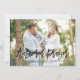 glädjen med familj och vänner med detta handskrivna meddelande om gravid av foton. Det här platta kortet har skript med "svarad bön" med vattenfärgsbakgrund för blad.