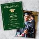 Elegant och budgetvänlig grönt studenten-utlysning med ett tak för guld. Anpassa student namn, klassår, skola, högskola eller universiteten, examen och högre eller högre betyg i modern guld typografi. Gradens foto fyller kortets baksida.