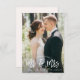 Ett bröllop-annonseringsfotokort för trendig med en bild av nygifta och handskrivna penselskript. Texten kan vara personlig tillsammans med bilden av bruden och trimningen och bakåt i färg.