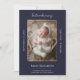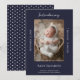 Vi presenterar ditt nyaste lilla kärlek med stil och skam med ett marinblått, modernt foto-födelsemeddelande! Det här minimalistiska födelsemeddelandet innehåller baby:s första foto med elegantens skript och ren modern design - perfekt för att dela glädjen i din växande familj. Om du belyser detaljer om nyckel som födelsedatum, vikt och längd, behållor den här layouten fokus på ditt nyfödda samtidigt som du erbjuder en hjärtlig introduktion från stolt mamma och pappa. Ett vackert sätt att tillkännage din baby med värme, enkelhet och tidlös charm.