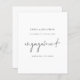 Meddelande om minimalistisk Förlovning för budgetskript> Ett prist SMALLER-alternativ på 4,5 x 5,6 tum. Finns i ett SEMI-GLOSS 110 lb-kort LAGRAR, vilket är standardalternativet (tjockare för inbjudningar), ELLER SATIN AVSLUTAR 80 lb PAPPER LAGRAR (perfekt för bilagor). En enkel och elegant svart och vit design för att tillkännage nyheterna i lycklig. Förlovningen finns i ett modernt set skript i mitten.Resten av texten kan du enkelt anpassa. Text- och bakgrundsterminen färg kan ändras om du vill förbättra kostym i bröllop genom att anpassa ytterligare alternativ.