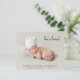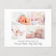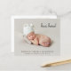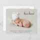 Minsta budgetvänliga 5-foto-födelsemeddelande. Ditt nyfödda foto fyller framsidan och är överlagrad med "han är här!" "hon är här!" eller "Jag är här!" i ett skript för contemporary (du kan flytta texten till ett annat område på kortet till kostym genom att välja "anpassa ytterligare"). Lägg till hans eller hennes namn, ankomstdatum och födelsestatus. Lägg till ytterligare fyra familjefotografier på baksidan, ett "välkommet" meddelande och moderns och syskon namn.