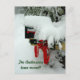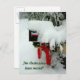 Postlåda på landsbygden på vintern, nytt adress vykort. En frostig vinterscen visar en brevlåda på ett träd täckt av ett färskt snöfall och dekorerat med röda bögar. Med malltextområdet kan du anpassa framsidan och lägga till ny adress information bakåt.
