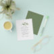 en modern budgetplan med en enda olivoljefat gren och ett vackert blandat typsnitt. Dess rena, outspädda vattenfärg och nedsänkta grönt-toner är perfekt för ett elegant klassiskt bröllop-meddelande. En del av en elegant om trendinsamling.