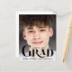 Ett billigt budgetvänligt alternativ för att tillkännage dina student landvinningar. Det här moderna studenten-meddelandet visar hans eller hennes favoritfoto med "GRAD" överst i stor fet trendig. Lägg enkelt till hans eller hennes namn, skolår och klassår.