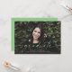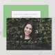 Det här meddelandet om utfallsfotografi till studenten innehåller ord "student" skrivet i grönt på framsidan. Det har plats för student namn, klassår och skola. Kortets baksida kan användas för ett personligt meddelande eller en inbjudan till studentfest.