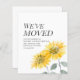 I vårt kort för meddelande om budgetens flytta finns solblommor med primrose gult- som visar lite av sin stjälk att tillföra i greenery. Skicka unika meddelandekort för flytta till vänner och familj för att informera dem om din nya adress. Texten på kortet kan anpassas till valfri ordalydelse genom att klicka på knappen "Anpassa" ovan. Det kommer att göra någon ljusare dag med både meddelandet och solrosillustrationen av vattenfärgen.