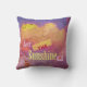 Muren, i den ursprungliga teckningen av ZoeSPEAK på detta inspirerande Dekorativ kudde, är en gammal röd tegelvägg med en mural på stucco som faller bort. Mural är en bild av puffa moln i solnedgången, all rosa och ljus gult överst mot ett djupt blå himmel. Budskapet är att låta solsken komma in.