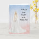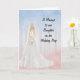 Meddelande till Dotter på hennes Bröllopsdag kort, från hennes föräldrar. Konstruktionen är en vacker brud i sin gryning med en slöja och blommor, med en bakgrund av magisk skogen. Hela orden på kortet kan ändras. Tack vare Design Cuts och Kreativ Fabrica för en del av inslagen i designen.