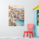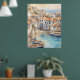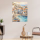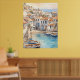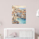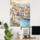 Fånga skönheten i en medelhavsstrandby vid solnedgång med denna akvarell väggkonst. Gyllene-orange himlar som speglas i turkosa vatten, charmiga gator, blommande växter och terrakotta-tak hus skapar en lugn och inbjudande scen.