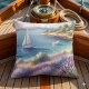 Medelhavet Lavender Kusten med segelbåtar Kudde