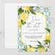 Meddela din fest med solkysst elegans med detta medelhavsinspirerade rädda-datum-kort med citronmotiv. Med handmålade akvarellcitroner, frisk grön lövverk och ett livfullt italienskt kakel Mönster i blå och vit, är denna design inspirerad av Amalfi-kustens och södra Italiens skönhet.