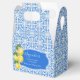 Denna vackra blåa medelhavsplattforms- och citronscitron-design är en del av en koordinerad Bröllopsdusch-svit.