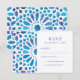 Transporter dina gäster till soldränkta stränder vid Medelhavet med vår exklusiva blåkakelklädda bröllopsinbjudan. De marockanska och spanska kakel-motiven, intrikat designade i levande nyanser av blått, skapar en rustik elegans som är perfekt för ett destinationbröllop eller en kustinspirerad fest.