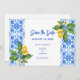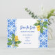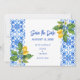 Medelhavsblå kakel och citroner sparar datum spara datumet