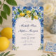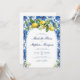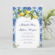 Fira din speciella dag med vår medelhavsinspirerade bröllopsinbjudan med vackra blå klinker och citron. Denna unika design kommer att överraska dina gäster och skapa den perfekta tonen för ditt eleganta och charmiga bröllop. Handgjord med kärlek, denna inbjudan kommer säkert att imponera och lyfta din händelse till nästa nivå. Beställ nu för att lägga till en touch av tidlös skönhet till din stora dag!