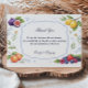 En förfinad medelhavsinspirerad design med handmålade frukter, ömtåliga botaniska element och mjuka naturliga toner. Kompositionen kombinerar en klassisk ornamental ram med en lätt och balanserad layout, vilket skapar en tidlös estetik inspirerad av kustlandskap och trädgårdselegans.