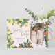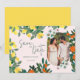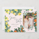 Meddela din speciella dag med denna eleganta medelhavsinspirerade "Save the Date"-design. Med handmålade citroner, apelsiner, olivblad och ömtåliga blommor fångar denna konst charmörskvaliteten hos ett soligt italienskt eller kustnärt bröllop. Den mjuka romantiska färgpaletten och den moderna typsnittsstilen skapar en snygg och tidlös look, medan fototrymmet låter par personalisera kortet med sitt favoritförlovningsfoto. Perfekt för bröllop med tema Amalfi-kusten, Italien, Grekland eller citrus, sätter denna design vackert tonen för en glädjefylld fest. Originalkonst av Caroline Bonne Müller