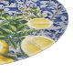 Hand målade traditionella plattor från Portugal med citroner från Medelhavet. Mönster av perfektion. Azulejo, blå och vit blommigt, löv-platta teckningar. Perfektens dekorativa utformning, idealisk gåva till alla tillfälle. En vacker sommardesign i Medelhavsområdet som skildrar citroner av gult med deras gröna och blommar mot en blå och vit vintage i Portugal mönster.