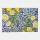 Hand målade traditionella plattor från Portugal med citroner från Medelhavet. Mönster av perfektion. Azulejo, blå och vit blommigt, löv-platta teckningar. Perfektens dekorativa utformning, idealisk gåva till alla tillfälle. En vacker sommardesign i Medelhavsområdet som skildrar citroner av gult med deras gröna och blommar mot en blå och vit vintage i Portugal mönster.