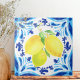 Fånga den soldränkta charmen hos en medelhavsvilla med denna keramiska platta, dekorerad med citroner i mjuka blå och vita nyanser. Perfekt för väggaccent, dekorativa paneler, nischdisplayer, underlägg och andra kreativa inomhusapplikationer.