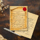 Ta ett steg tillbaka i tiden till en era av riddarskap och romantik med vårt medeltida åldrande rullvaxsigill tackkort. Tillverkat med utsökt omsorg om detaljerna, fångar detta kort essensen av en svunnen era, med rikt, åldrande (falskt) pergament prytt med svarta accenter och ett autentiskt utseende rött vaxsigill med snöre. Fantasy Bröllop. Finns tillgängligt som tryckt och/eller nedladdning.