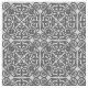 Medeltida belägger med tegel arabesquen, damastast mönstertyg i silvergrå färg/grått med en blek grå färgbakgrund
